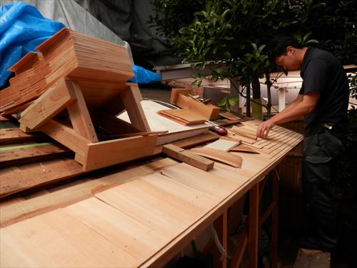 こけらぶきやね施工